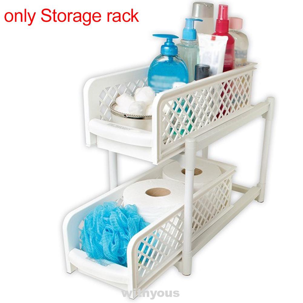 2 Tier Basket Organizer Storage Bathroom Sliding Cabinet Drawer