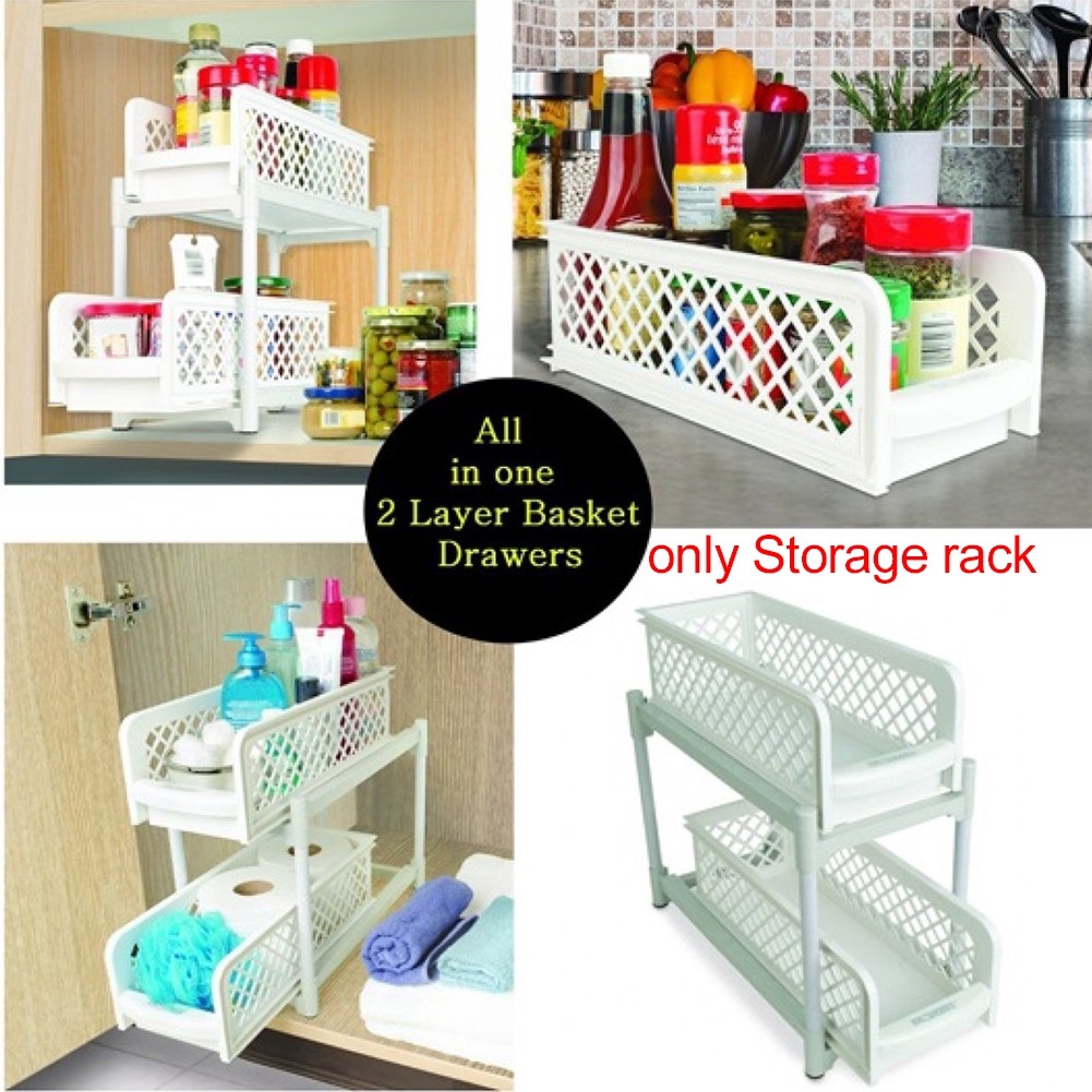 2 Tier Basket Organizer Portable Kitchen Sliding Cabinet Drawer