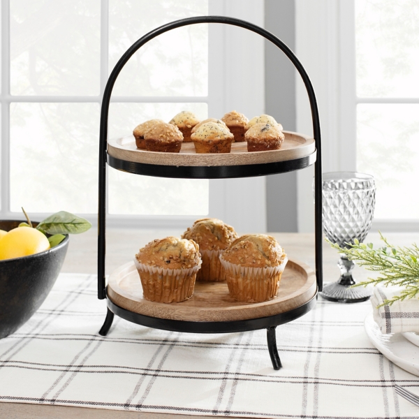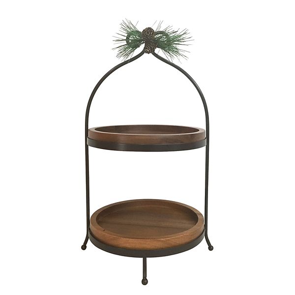 Serving Trays Black Metal And Natural Wood 2 Tier Server Tray