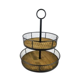Farmhouse Kitchen Metal Handle Display Stand Round Rustic 2 Tiered