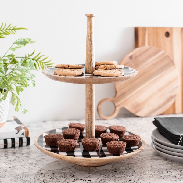 Buffalo Check Wooden 2 Tier Serving Tray Kirklands