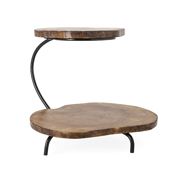 Natural Wood Two Tier Stand With Metal Handle Kirklands