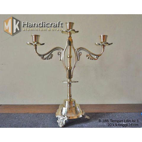 Tempat Lilin Cabang 3 Polos Kuningan Candle Holder Brass