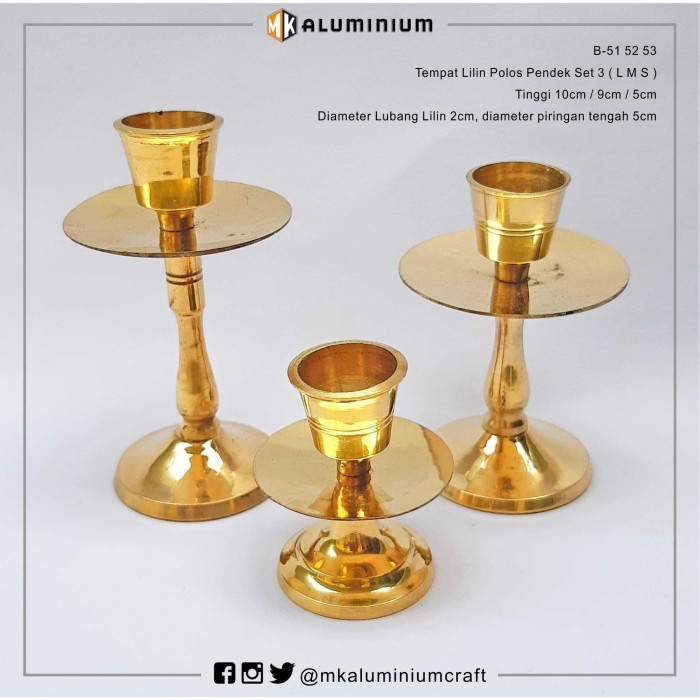 Tempat Lilin Kuningan Pendek Set 3 Candle Holder Mk Aluminium