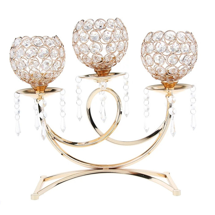 Jual Njcharms Gold Crystal Candle Holders 3 Candle Candelabras