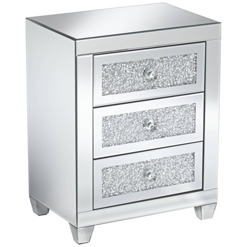 Bedroom Furniture 3 Drawer Side Table End Table Silver Mirrors