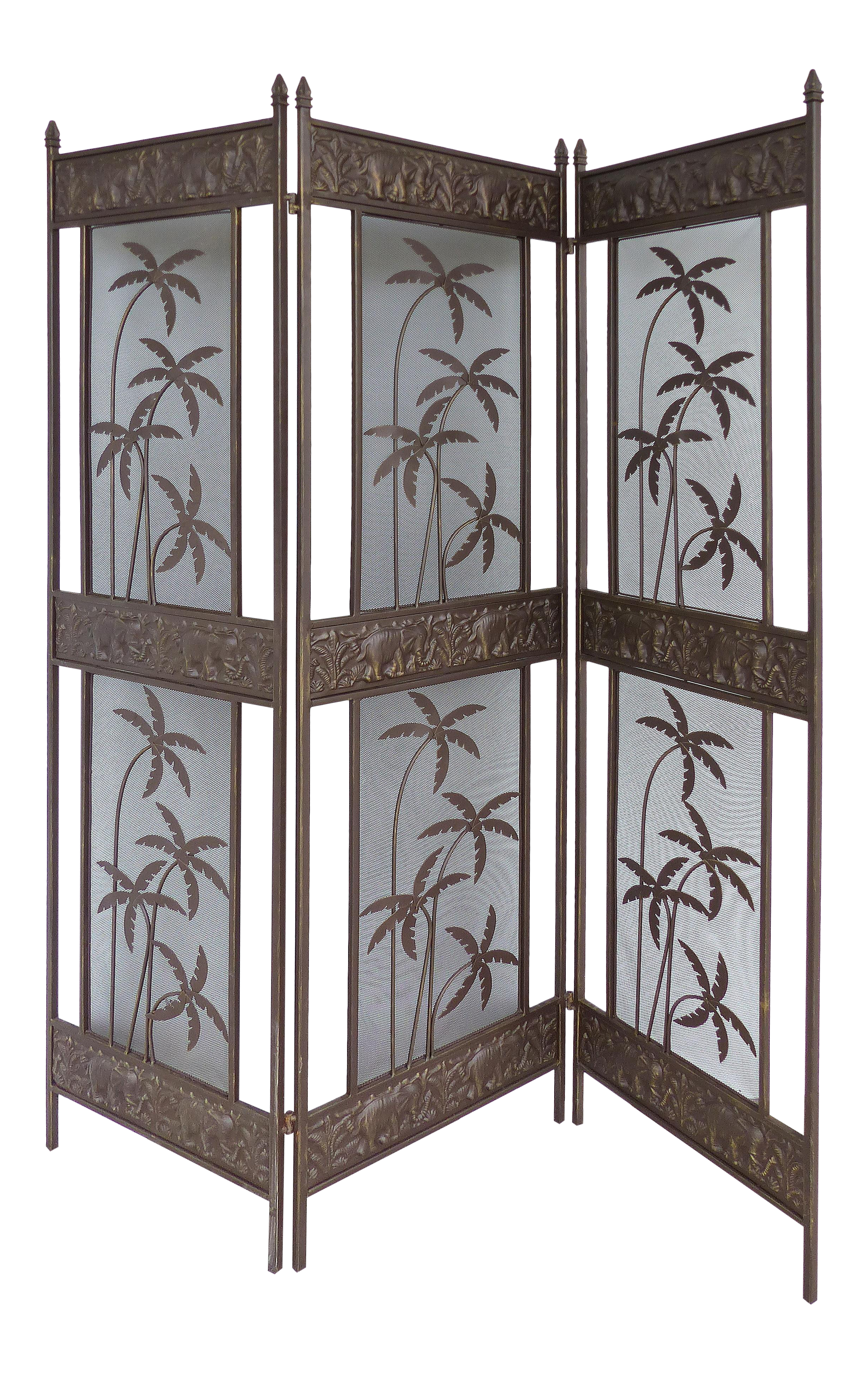 20th Century Hollywood Regency Elephant Palm Tree Motif 3 Panel Screen Room Divider Chairish