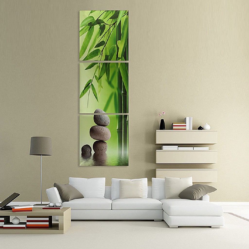 Unframed 3 Panel Wall Art Oil Painting Stone Bamboo Canvas Painting Shopee Indonesia