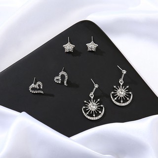 3 Piece Silver Department Temperament Earrings Her Red Round Face