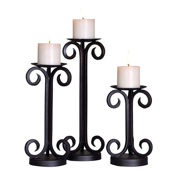 Hosley set of 3 pillar candle holders silver finish 7 inch 5 inch 3 inch high. Whether youre searching for specific candle holders like the 3 piece tabletop candlestick set or something more general like candle holders by august grove we have so many options with free shipping on just about everything. 44 out of 5 stars 73. Buy top selling products like ridge road decor 3 piece rustic wood candle holder set in espresso and elements by pfaltzgraff scroll metal patchwork candle holders set of 3.