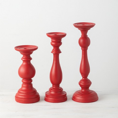 Red Carved Pillar Candle Holders Set Of 3 Kirklands