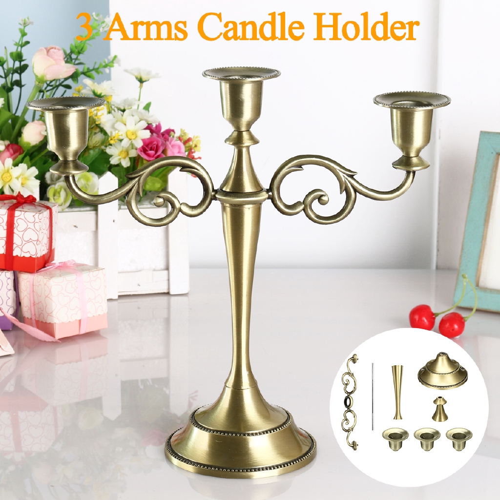 Amazon Com Gototop 3 Arms Candle Holder Gold Retro 3 Branches Candle Stick Stand Metal Candle Holder European Style Candelabra Wedding Candlestick Dinner Home Decor Gift Home Kitchen