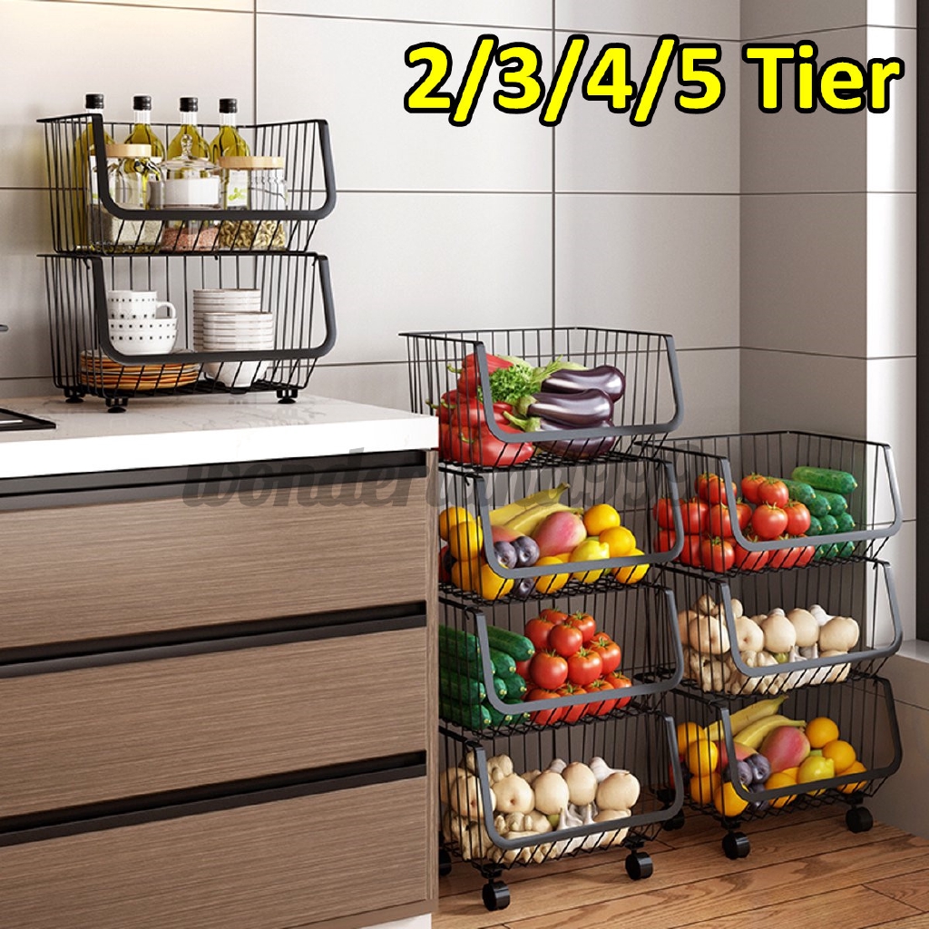 3 Tiers Kitchen Fruit Vegetable Storage Rack Basket Shelf Stand