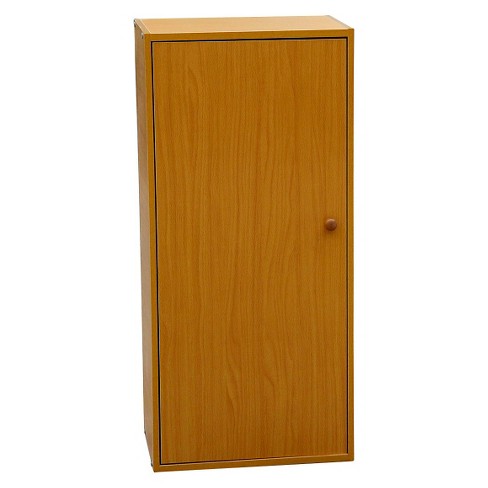 35 5 3 Tier Adjustable Book Shelf With Door Tan Wood Ore
