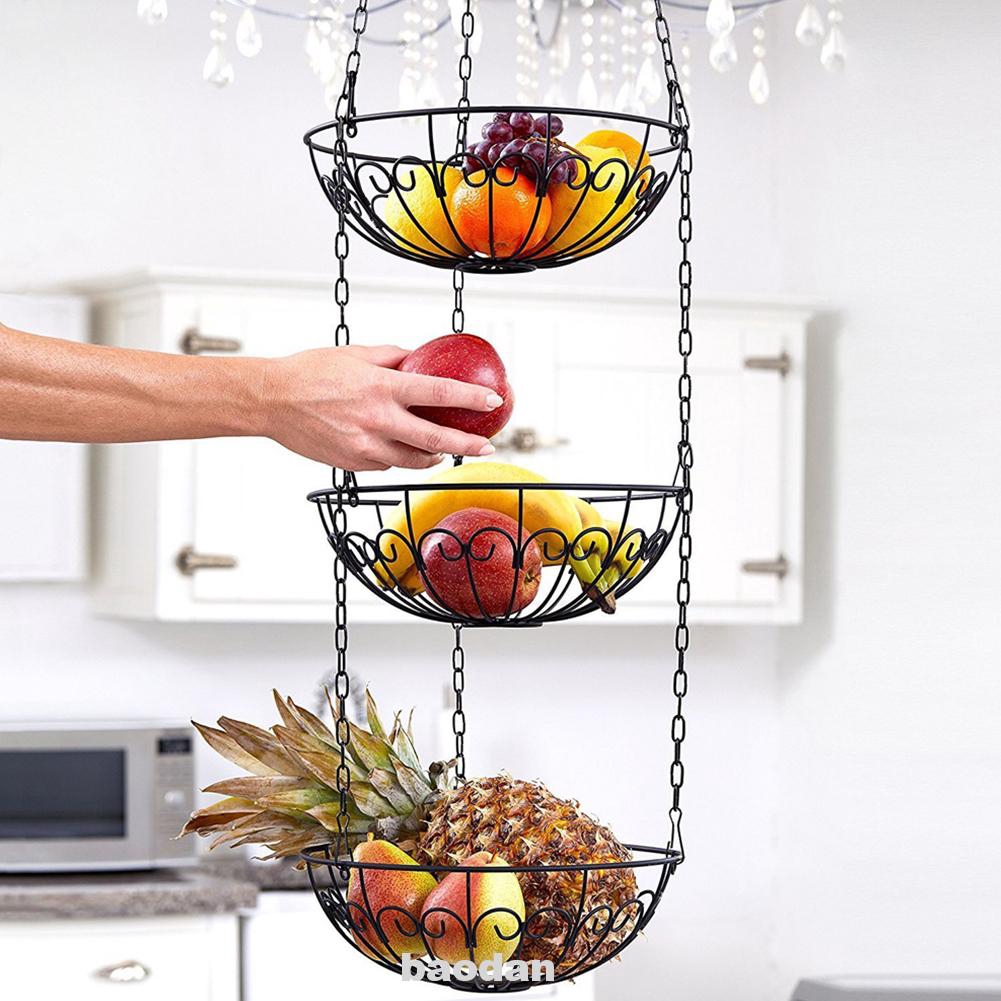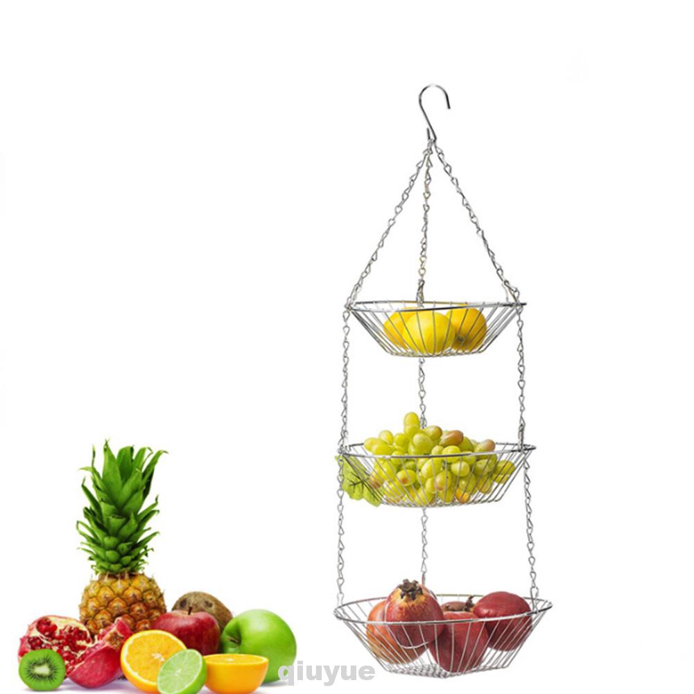 Bedroom Hanging Wire Home Kitchen Organize Storage 3 Tier Fruit