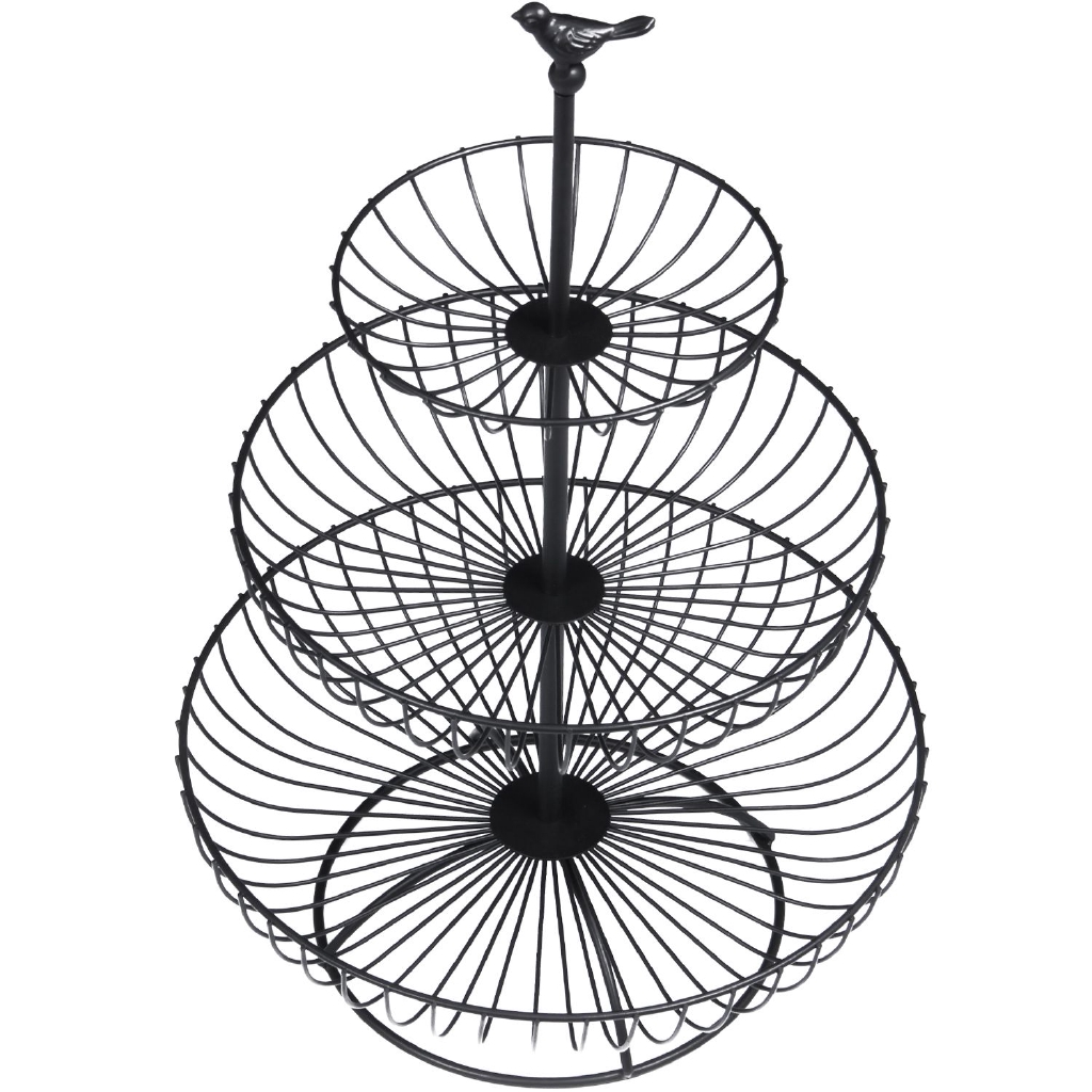Black Galvanized 3 Tier Fruit Basket Floor Stand View Galvanized