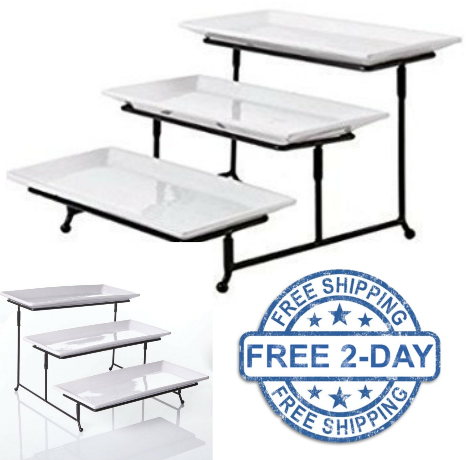 New 3 Tier Buffet Server 3 Stoneware Serving Platter Trays Metal