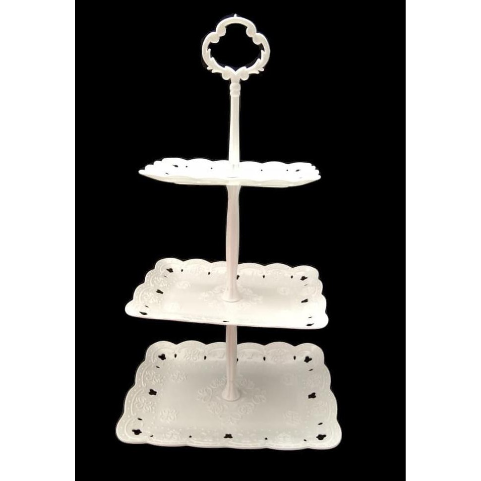 Ready Stock Rak Susun Plastik Segi Empat Kue 3 Tier Stand White