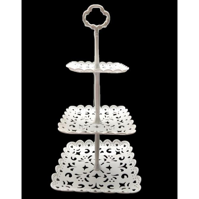 Jual New Rak Susun Plastik Segi Empat Kue 3 Tier Stand White Cup