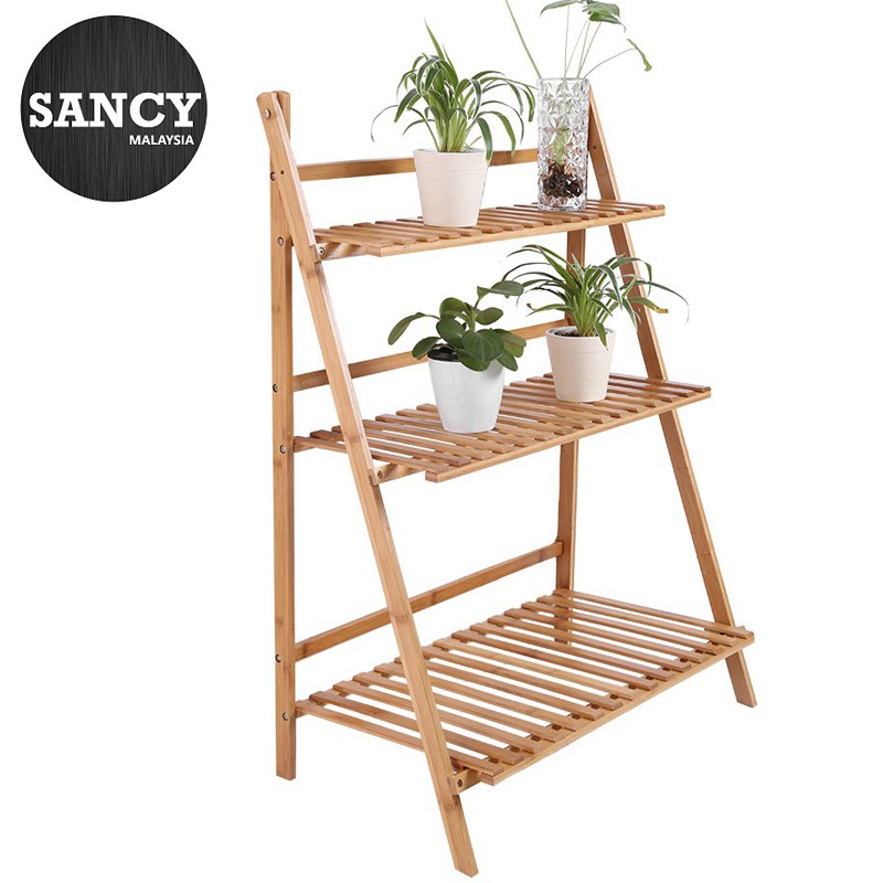 3 Tier Bamboo Hanging Folding Plant Shelf Stand Flower Pot Display