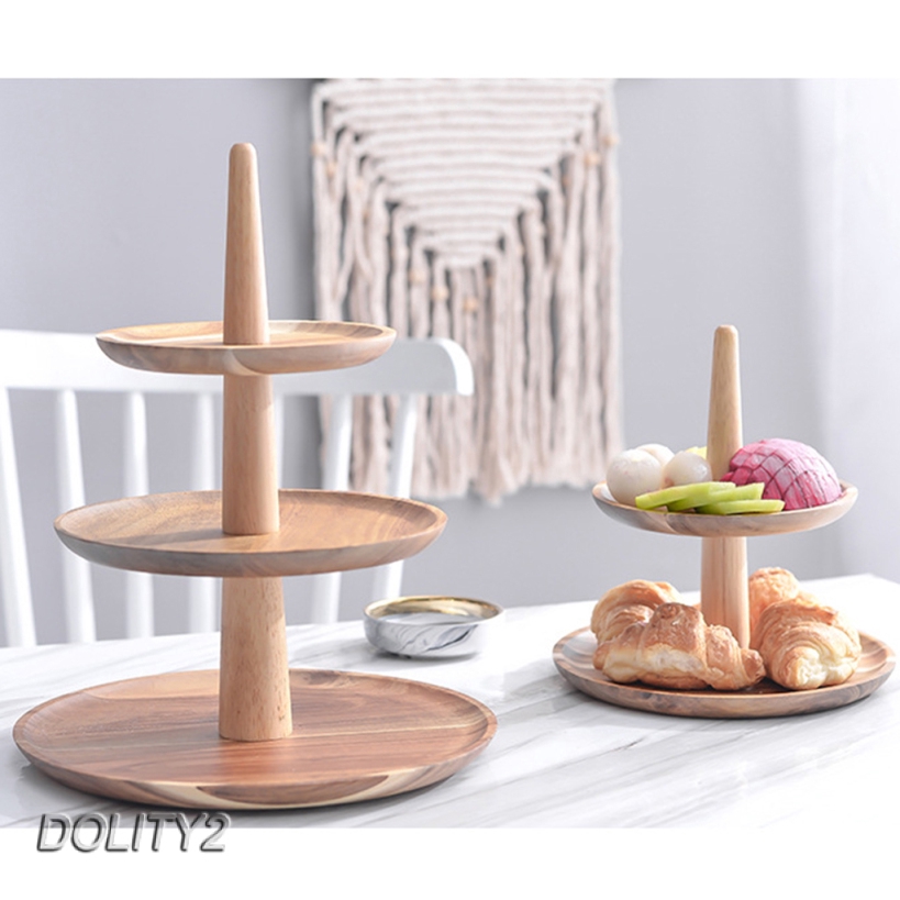 Retro 2 3tier Wooden Cheese Dish Salad Plate Cake Cupcake Stand