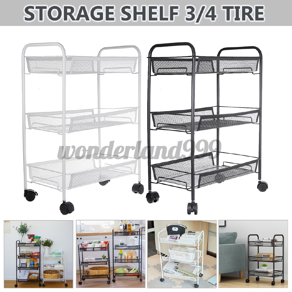 3 4 Tiers Rolling Utility Cart Shelf Kitchen Organizer Storage