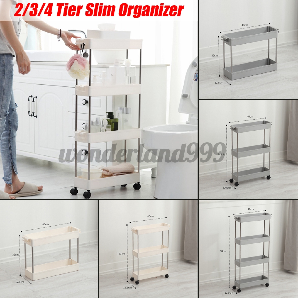 2 3 4 Tier Storage Rack Shelf Organizer Slim Space Saving Wheels