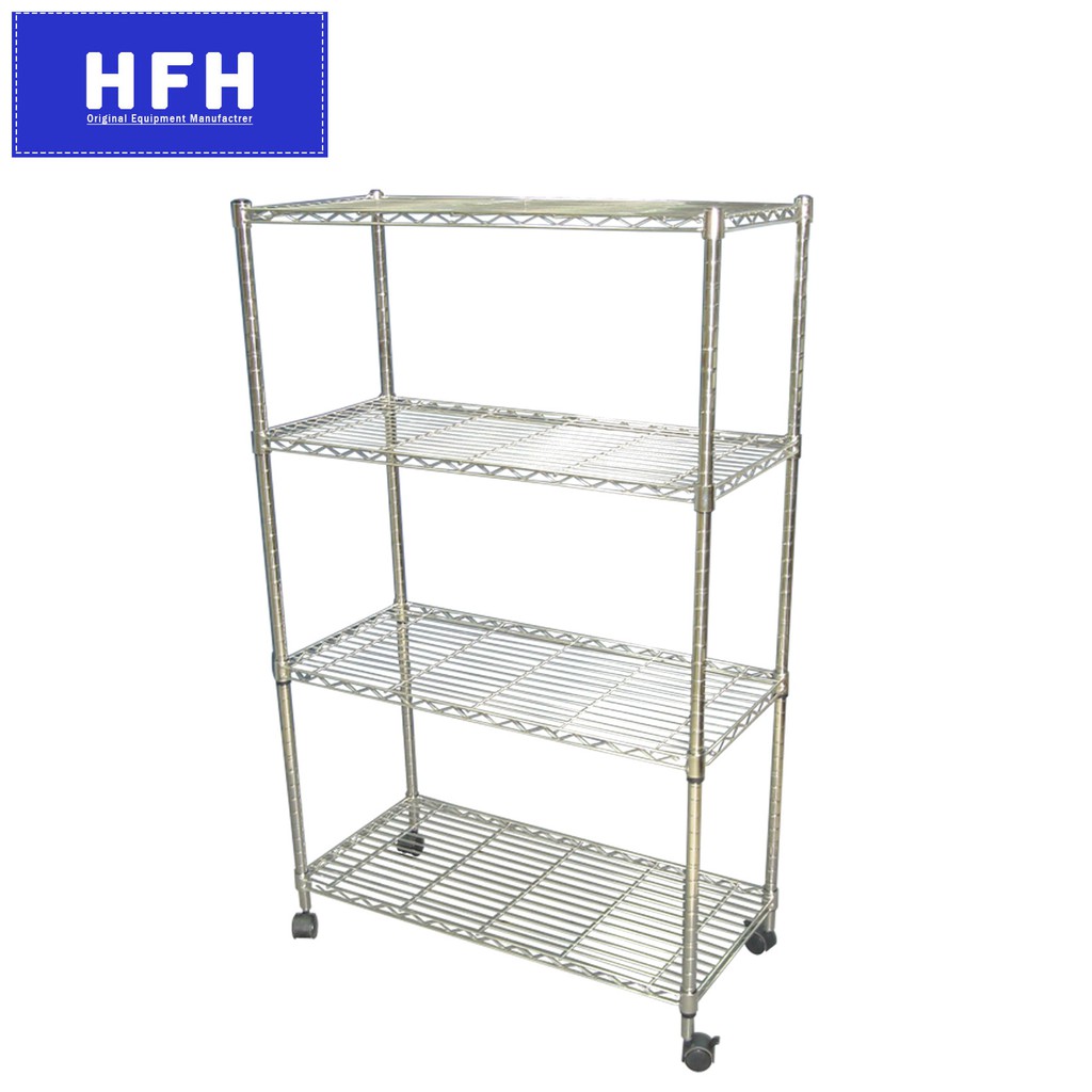 4 Tier Wire Shelving With Silence Wheels High Quality Chrome
