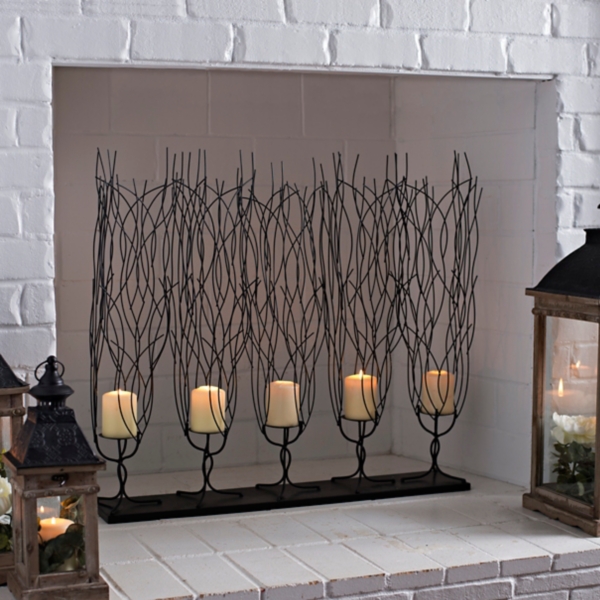 5 Pillar Candle Holder Sconce Pair Wrought Iron Fireplace Mantle