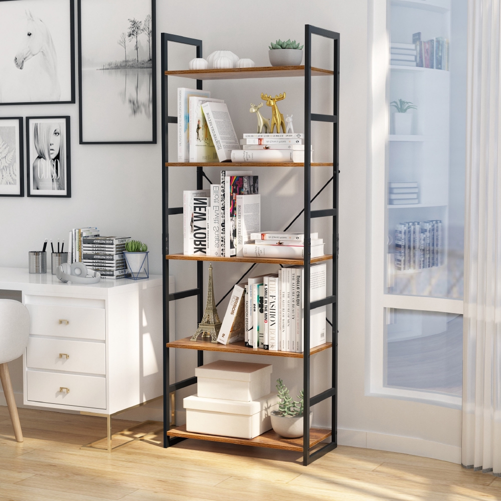 5 Tier Bookshelf Vintage Industrial Style Bookcase Open Storage