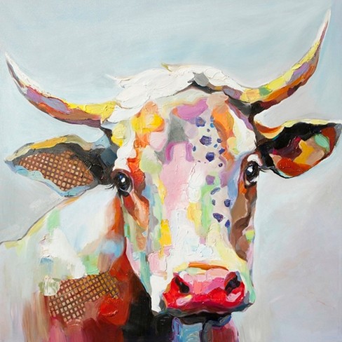Yaminsannio Painted Colorful Abstract Cow Oil Painting Photo