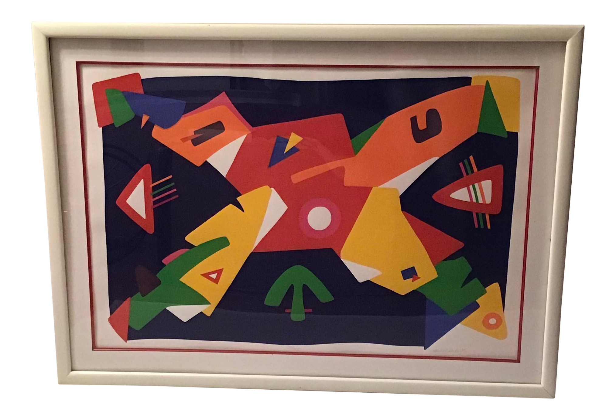 1990 S Large Daniel Gelakoska Color X Abstract Framed Art With