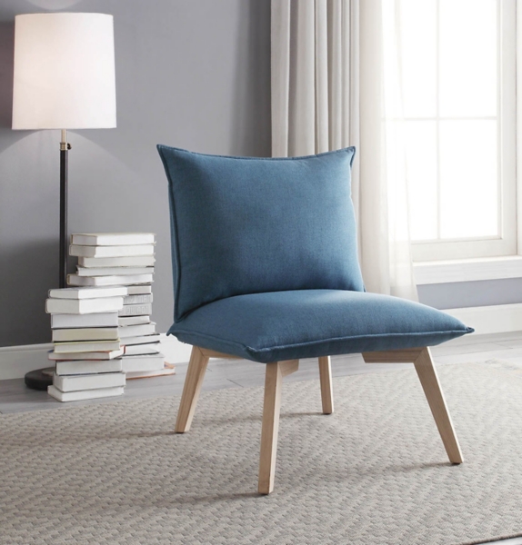 Acme Furniture Living Room Blue Accent Chair With Pillow 59613