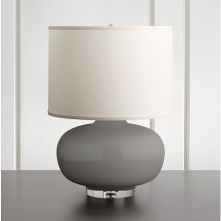 Modern Round Table Lamp With Acrylic Base And Grey Lamp Shade
