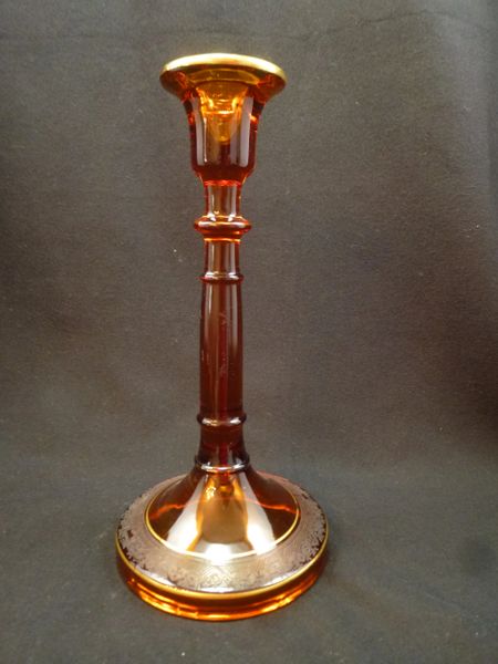 Amber Victorian Glass Candle Holder
