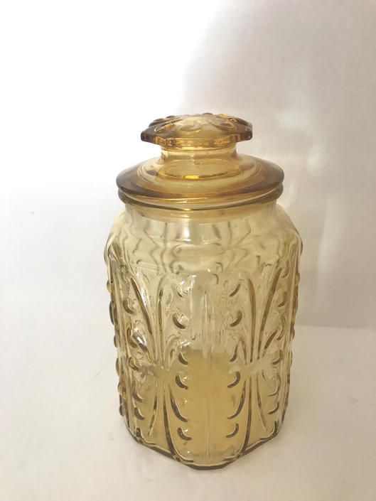 Vintage Yellow Amber Atterbury Scroll Imperial Glass Canister Jar