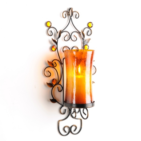 Amber Scroll Metal Wall Sconce With Hurricane Jar Small Hobby