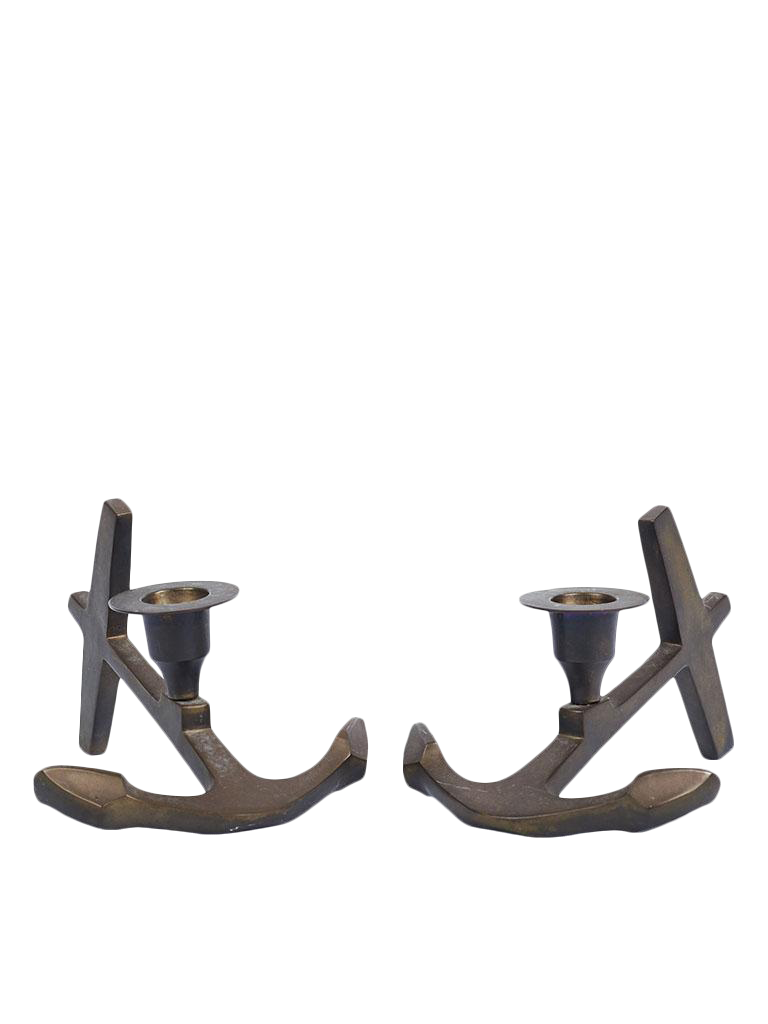 Brass Anchor Taper Candle Holder Set Nautical Luxuries