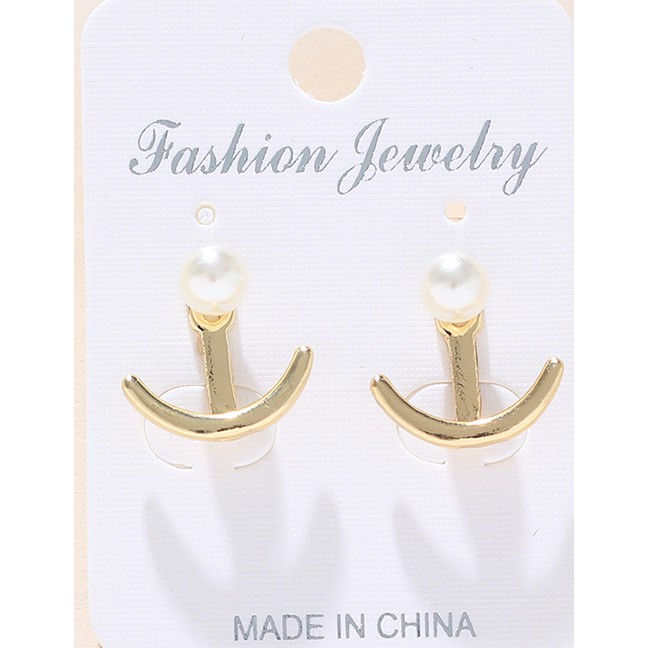 Lrc Anting Tusuk Fashion Gold Metal Anchor Pearl Back Mounted