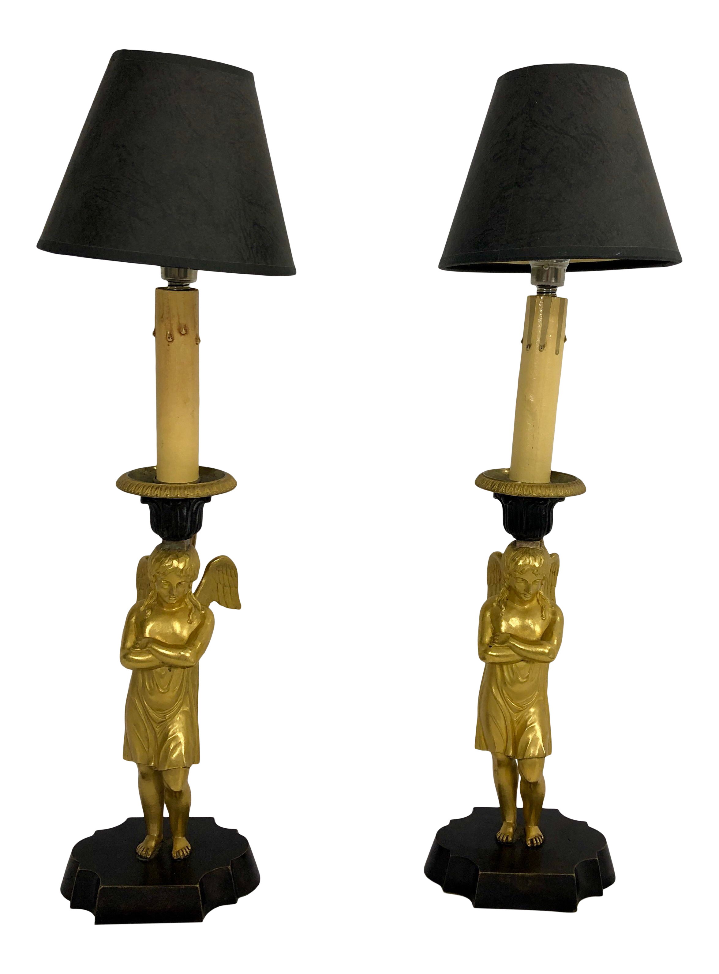 Bronze French Empire Angel Table Lamps A Pair Chairish