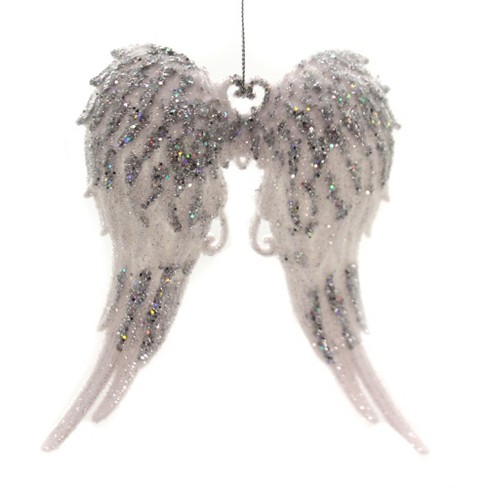 White With Silver Glitter Angel Wings Ornament Item 106422 The