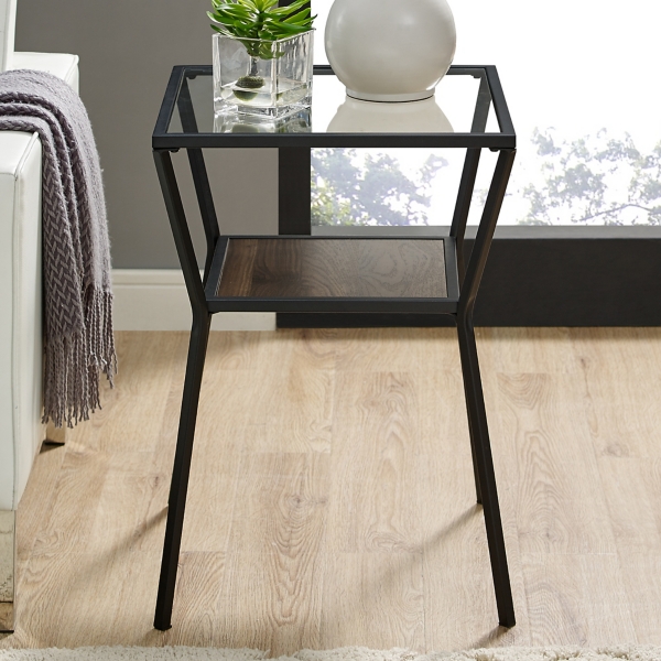 Walker Edison Furniture Company 18 In Dark Walnut Modern Angled Metal Frame And Glass Top Side Table Hd8000 The