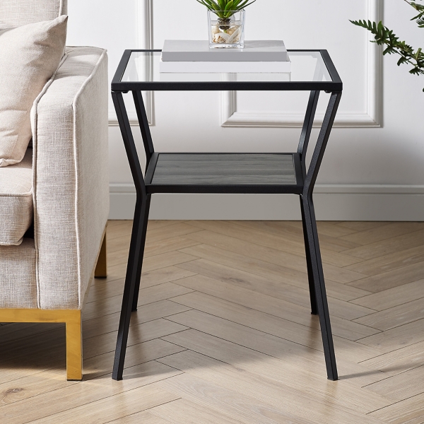 Walker Edison Furniture Company 18 In Slate Grey Modern Angled Metal Frame And Glass Top Side Table Hd8001 The
