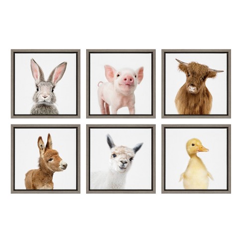 6pc 13 X 13 Sylvie Farm Animals Framed Canvas Art Set By Amy