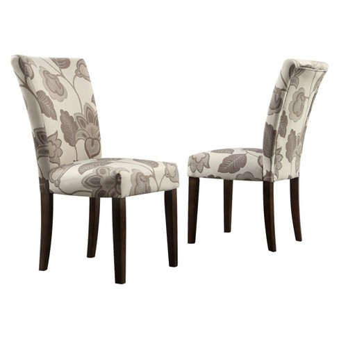 Set Of 2 Quinby Parson Floral Dining Chair Wood Gray Inspire Q