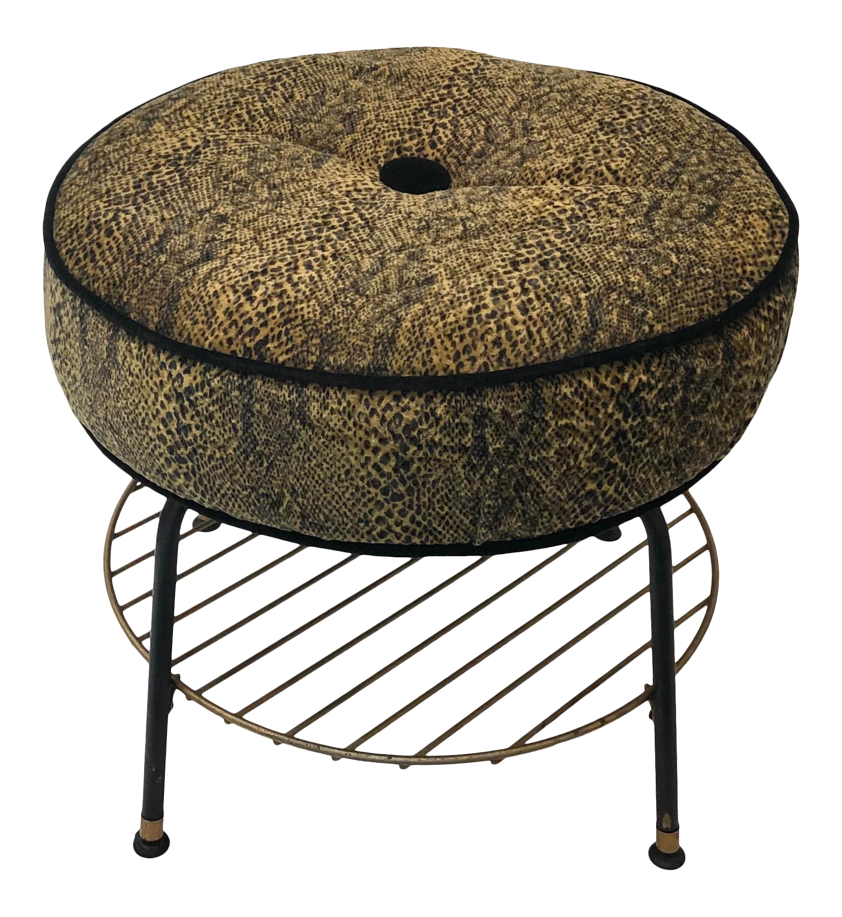 Italian Gilt Iron Faux Bamboo Stool With Animal Print Upholstery