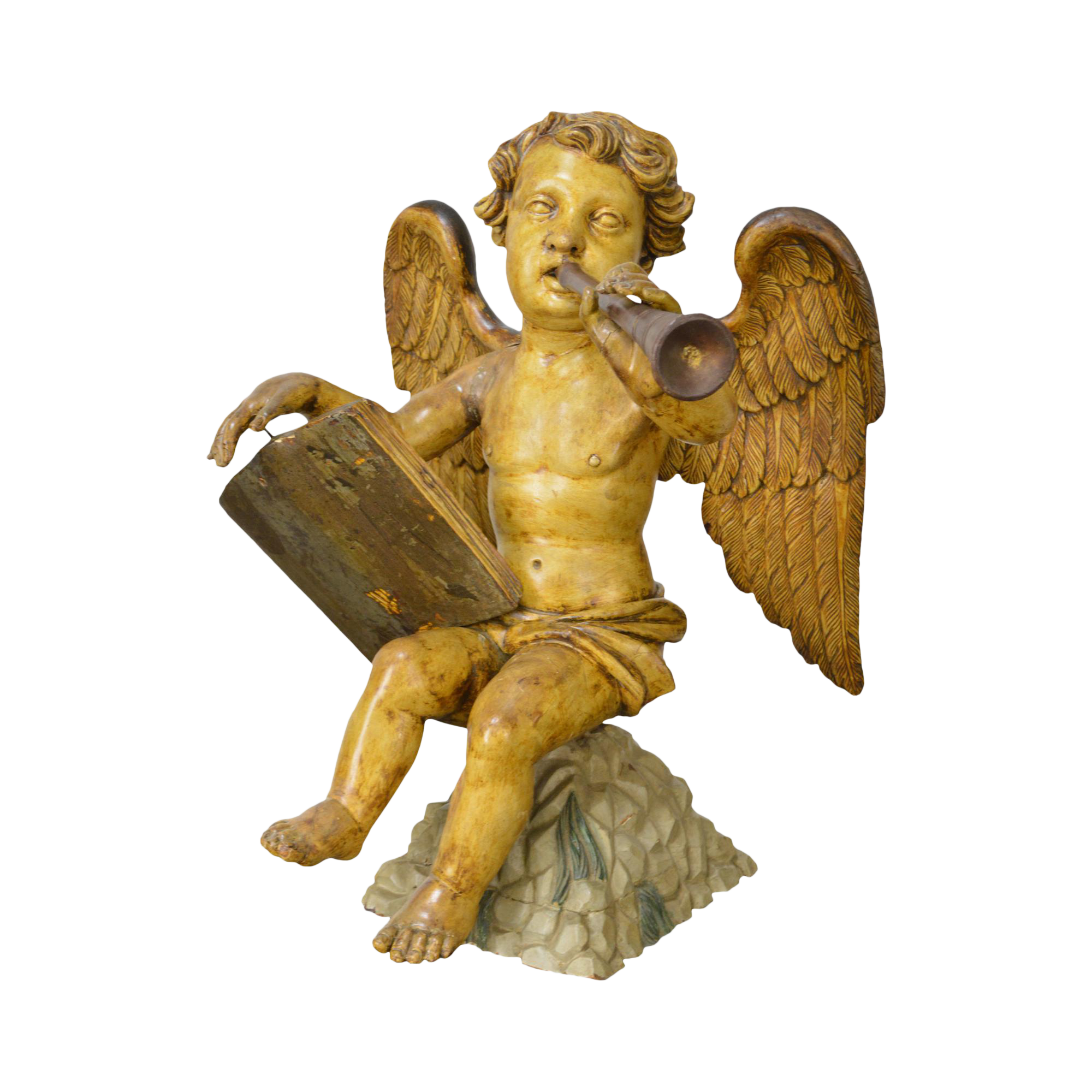 Italian 19th Century Antique Carved Wood Polychrome Angel Statue