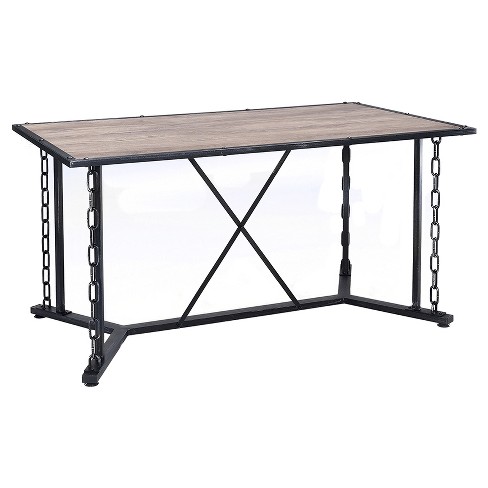 Alfred Antique Black Metal Wood Dining Table By Furniture Of America