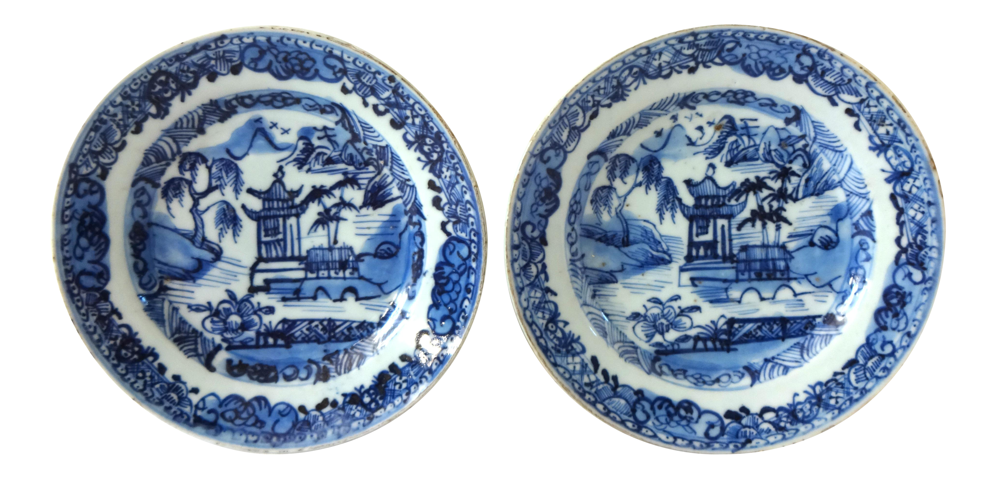 Two Antique Blue And White Plates Chinese And English Ceramics