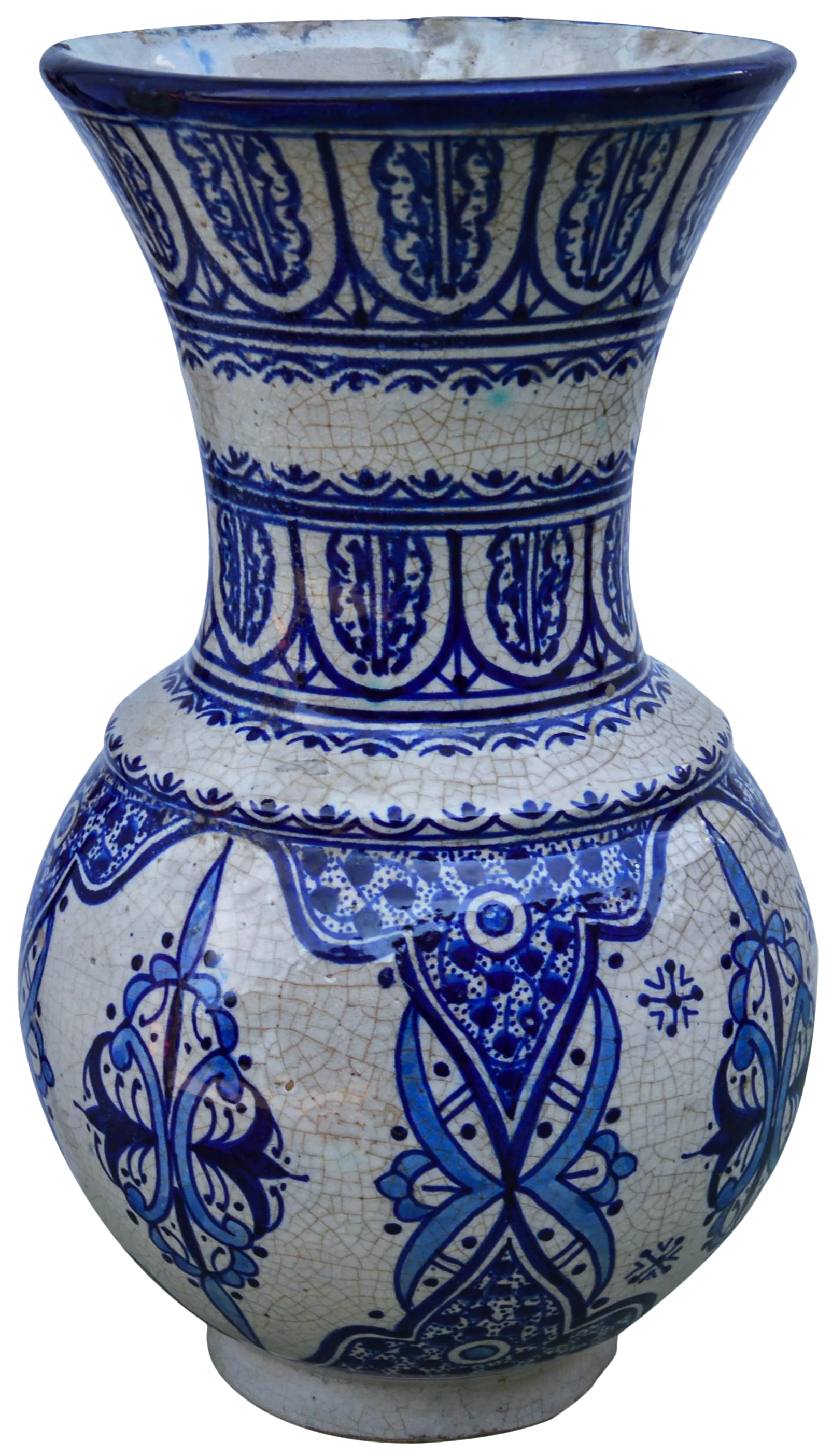 Antique Moorish Ceramic Vase From Fez Blue And White With Silver